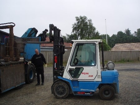 Vogn 1 har en Manitou 4 vejs medbringertruck, som kan løfte 2500 kg helt inde ved tårnet.