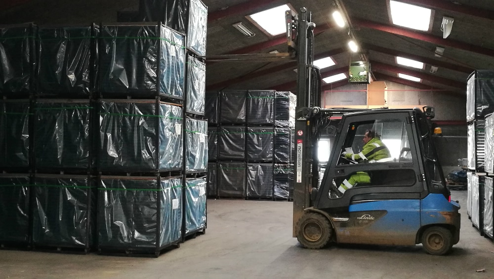 Lageret er på 20000 m2 vor de 6500 m2 er kold lager og 4000 m2 er opvarmet.